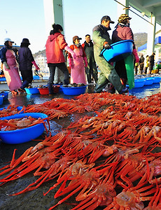 기사문리 항1 기사문리 항의 어판장 모습 동해안 북위 38도선에 위치한 기사문리 항내에 위치한 어판장에서 밤새 조업하여 잡아온 수산물들을 곧있을 경매에 대비하여 진열해 놓는 모습이다. 항내 배는 여러척 있었으니 이날 잡아온 어획물들은 신통치 않았다. 대게와 일명 심퉁이로 불리는 도치 그리고 바다 송어, 약간의 도루묵과 문어 몇마리가 전부였다. 위판장 분위기는 썰렁하기만 하였다. 바다에서 고기가 잡히지 않는다는 것은 이곳을 터전으로 살아가고 있는 어민들에게는 참으로 심각한 문제가 아닐 수 없다. 자연적인 문제도 있겠으나 분면 인간에 의한 자연 파괴가 큰 원인중의 하나임은 누구도 부정할 수 없을 것이다. 바라를 보호하고 보존하며 공존해야 하는 것이 인간의 미래인데,,,,, 요즘 너무 남획하는 것 같다. 아니 이미 너무 많은 것을 남획하였기에 이런 .. 2010. 2. 22. 이전 1 다음